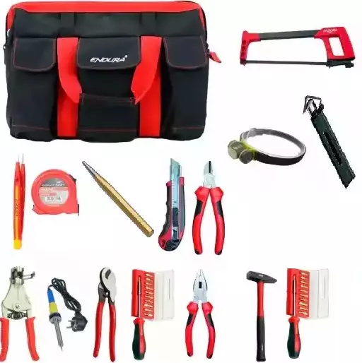 SK-17-prof (полный) - набор инструментов кабельщика-спайщика СвязьКомплект предназначен для работы с кабельными линиями. Он будет полезен для отбора нужного кабеля из пучка (с помощью тонального генератора и индуктивного щупа), резки кабеля, снятия внешней изоляции, зачистки и пайки проводников, сборки и разборки небольших конструкций, строительных и слесарных работ. В комплект входит фонарь с креплением на голову или каску и имеет 3 режима работы. Весь инструмент уложен в прочную сумку Endura. Размеры: 430x230x280 мм.